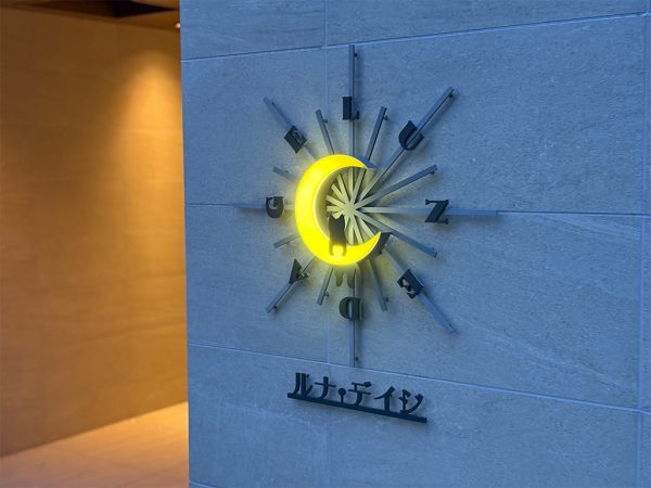 看板・サイン LUNE’DAGE (ルナ・デイジ)[第38回 いしかわ広告景観賞受賞] 第38回いしかわ広告景観賞にて、『金沢市長賞 』を受賞させていただきました。 シンプルで洗練されたデザインに、月の表現に使用されている黄色が 程よいアクセントを添えています。 夜間には、建物の白いタイルに映し出される月のサインが幻想的な雰囲気を醸し出し、 建物と調和しながら存在感を放っているサインです。 フォトギャラリー LUNE’DAGE 石川県金沢市